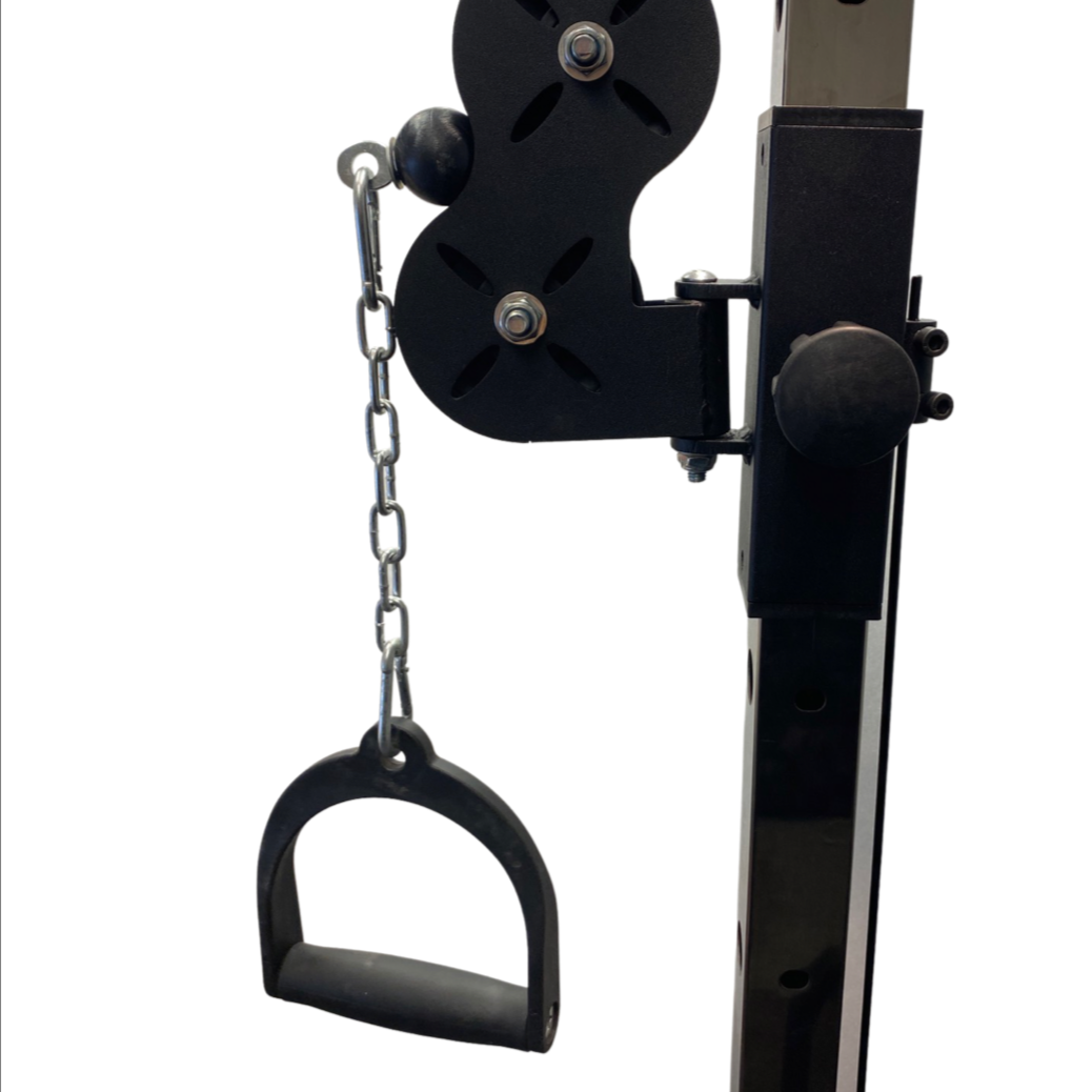 - Front 2 pulley systems fully adjustable with lock and secure capability to accommodate multiple exercises.