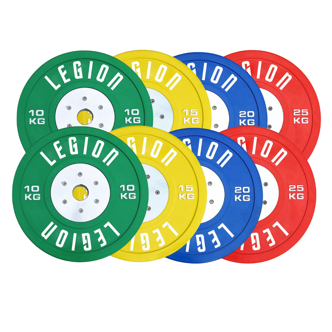 Legion Fitness Equipment Training Competition Bumper Plates provide the highest quality for your lifting needs. The Legion Training Competition Bumper Plates are made of 100% high quality virgin rubber and colour coded in line with IWF standard with 450mm diameter and 50mm centre hole with fully electroplated steel hub. All bundles are all sold with plates in pairs.